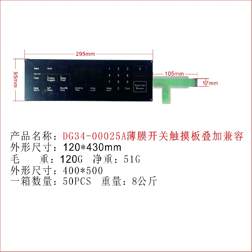 2021-07-09我公司專業生產薄膜開關面板的生產廠家,現有出口美洲烤箱/微波爐DG34-00020A DG34-00025A,DG34-00027B薄膜開關觸摸板疊加兼容等產品型號,歡迎新老客戶來電來信咨詢,肖先生,電話:13826545657(微信同號)